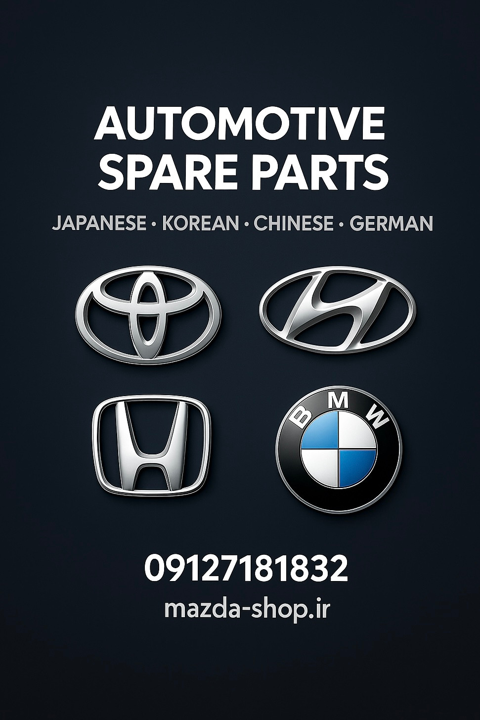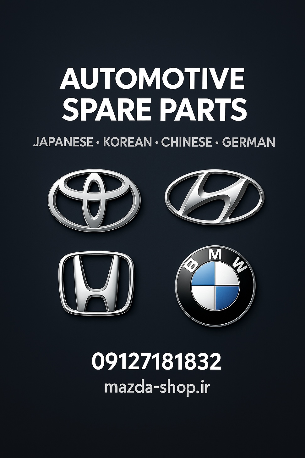 - عرضه قطعات اصلی Mazda، Toyota، Hyundai، Kia، BMW، Benz و برندهای معتبر دیگر